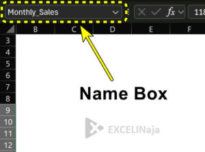 3. Navigasi Cepat: Daftar named range akan muncul di name box, cukup klik untuk langsung menuju data. (Catatan: Dynamic Named Range tidak muncul di name box).