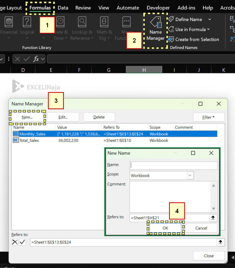 terdapat 2 cara untuk membuat named range. Yaitu sebagai berikut :